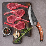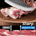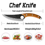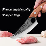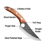 The curved Wood handle feels fantastic in hand. It's got the right amount of heft. The curved blade makes it great for chopping vegetables using a rocking motion. The multipurpose cooking knife would be a perfect choice in the kitchen, camping, barbecue.