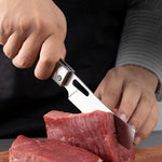 ULTRA-SHARP: High quality 8Cr14Mov Stainless Steel very durable and sharp blade, suitable for outdoor camping and kitchen cooking. excellent for meats, vegetables, fruit and more. Cutting like a master chef will bring you more enjoy in the kitchen or outdoor activities.