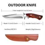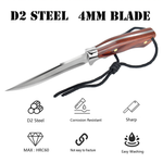 The outdoor knife is made of D2 steel, which has been finely ground to a hardness of 59-60 HRC through several processes. Whether wood, ropes or meat, it can do...