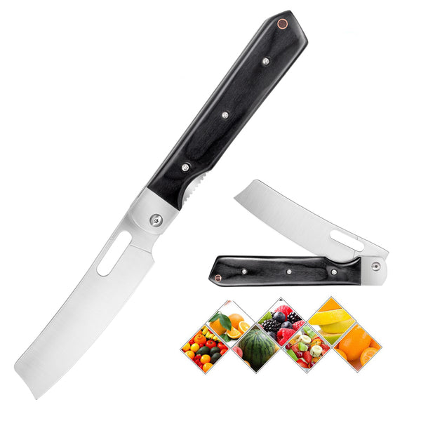 FUNCTIONAL: Folding and comfortable small chef's knife, perfect for outdoor cookouts, barbecues, fishing, hiking, and even cooking delicious food at home. This chef knife can be folded and even put into the pocket for easy storage and carrying.